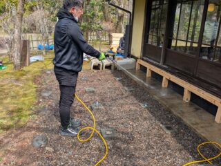 直ぐに伺いウッドデッキ作成前に土壌消毒と木部処理を